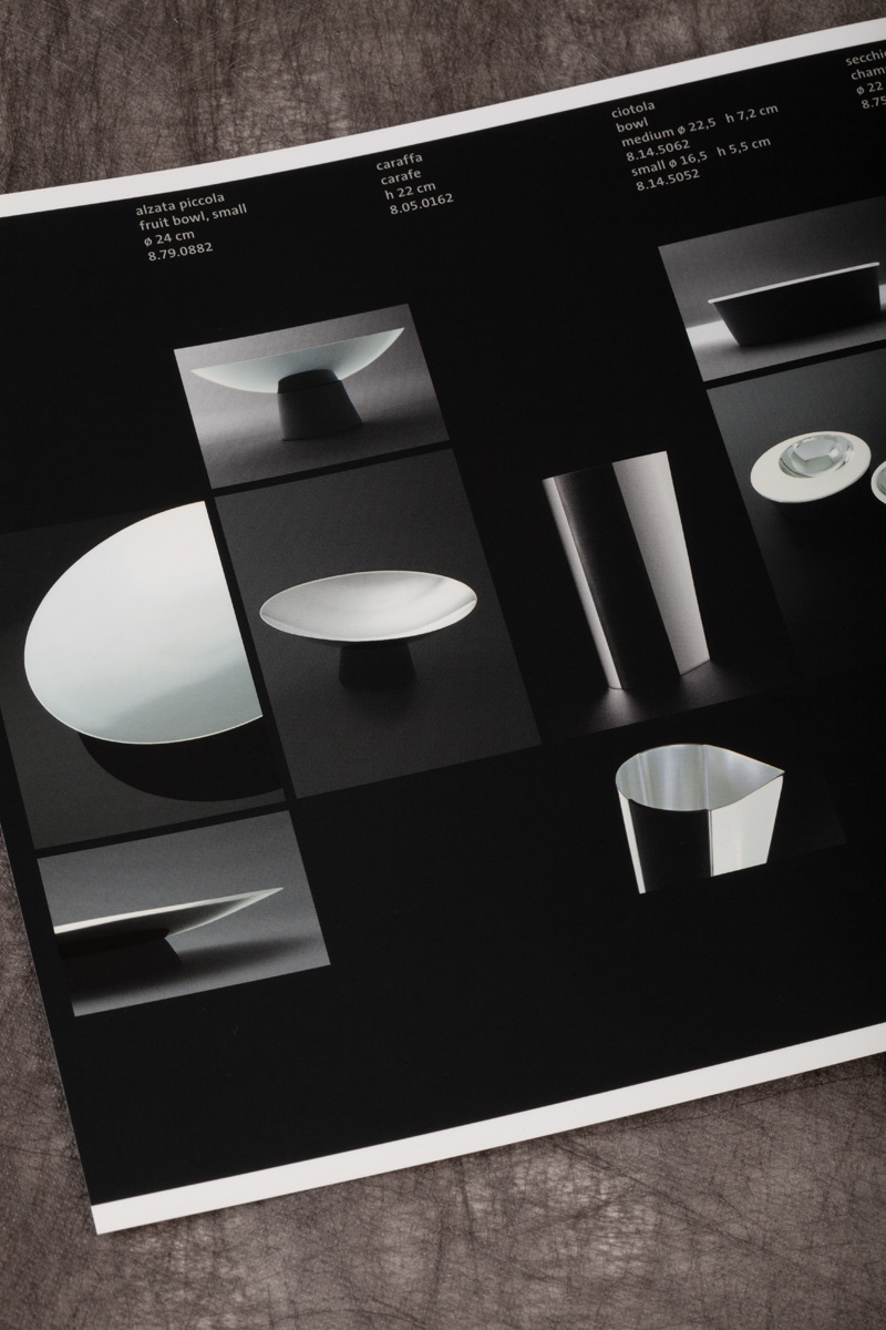 Design of catalog and packaging, as well as two of the products (carafe and ruler) for this contemporary line of Europe's largest producer of silver products, Argenterie Greggio based in Padova, Italy. All other products designed by Gabriele Schiavon.