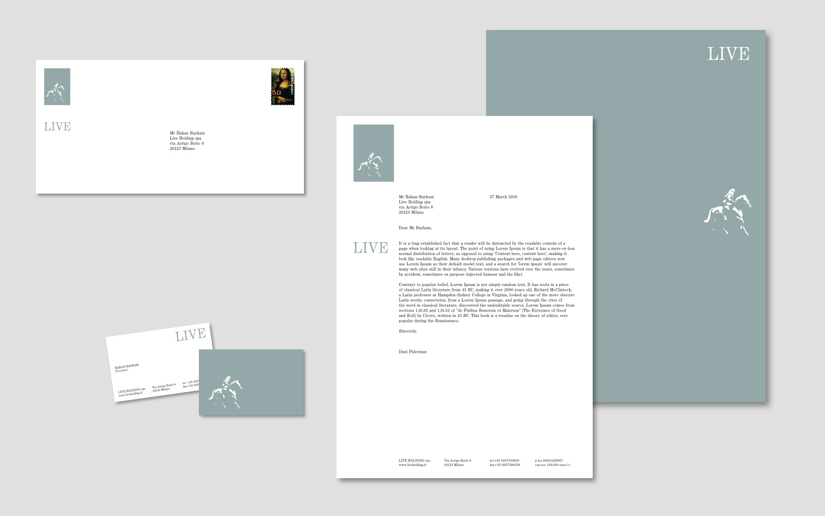 Design of the visual identity including the mark for Live Holding, a Milan-based investment firm.