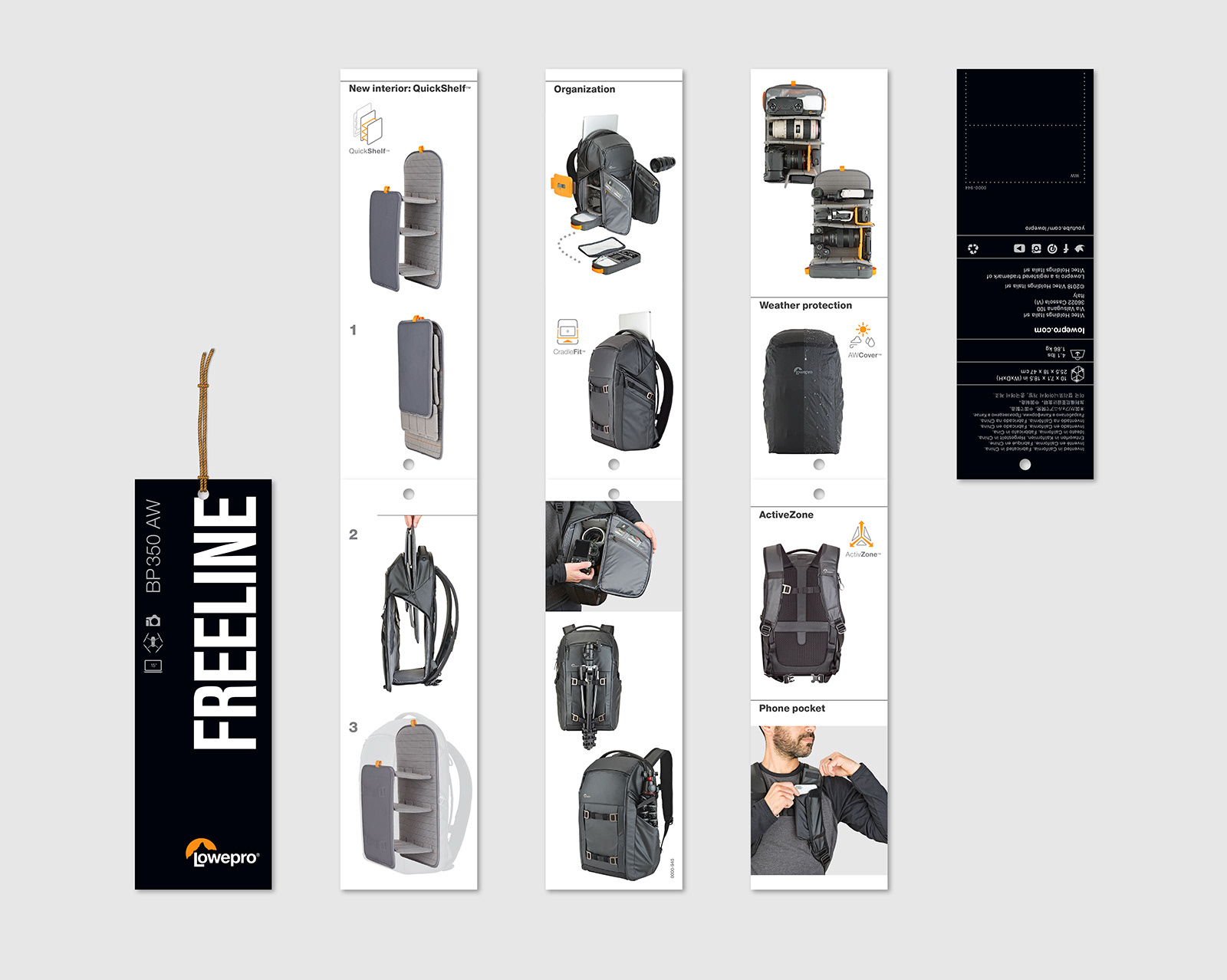 Hangtag design for the FreeLine Series by Lowepro.